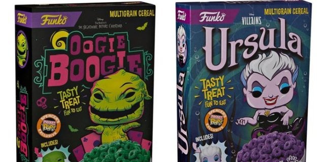 Funko enfrentará al conde Chocula, Franken Berry y Boo Berry con cereales de Halloween con los villanos clásicos de Disney, Ursula de La Sirenita y Oogie Boogie de La pesadilla antes de Navidad. Naturalmente, cada caja de FunkO viene con un premio Pocket Pop en su interior.