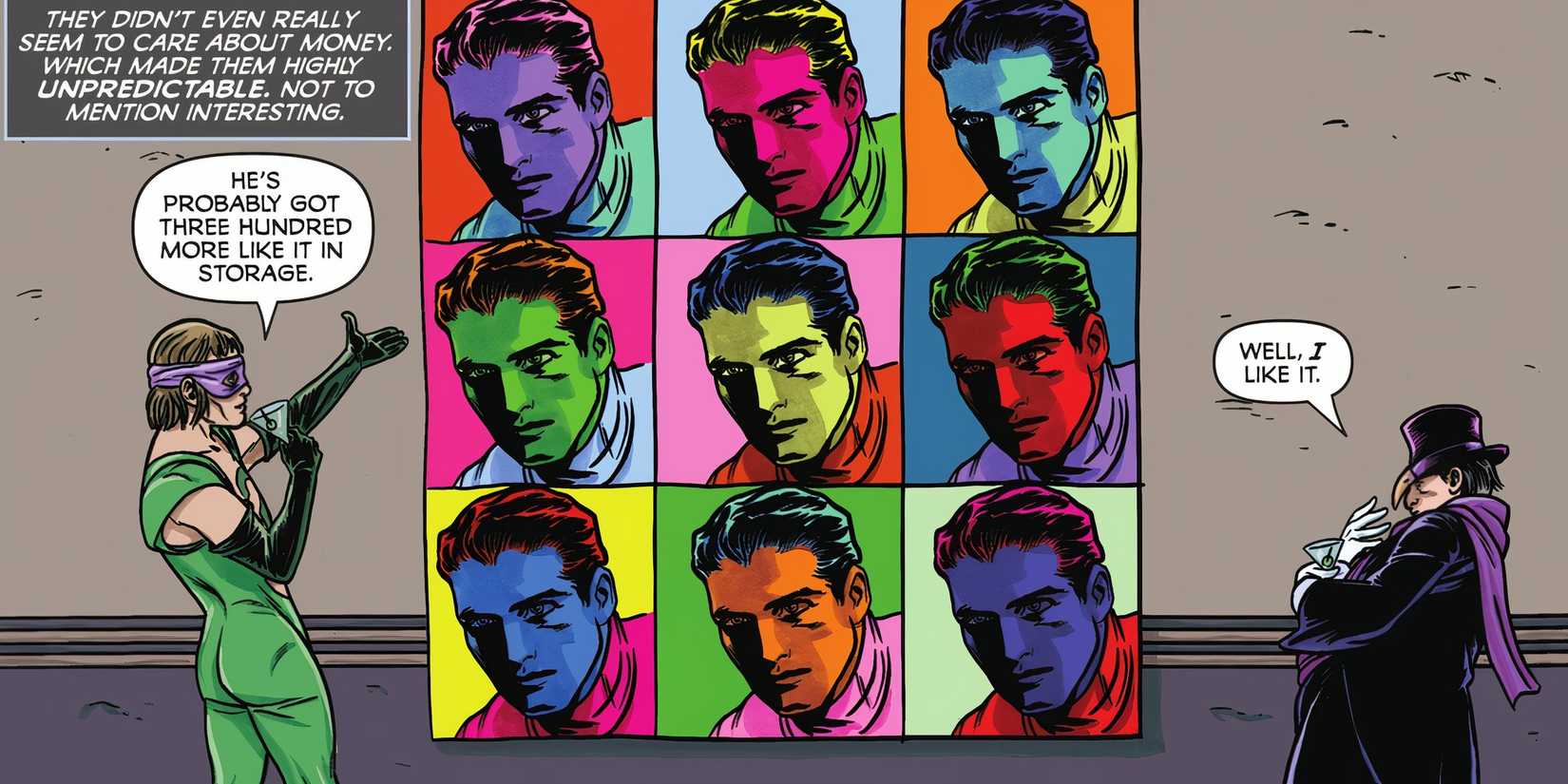 No se puede reinventar al Caballero de la Noche sin darle también un giro a sus mayores enemigos. Si bien es poco probable que Riddler, Penguin y Mad Hatter sean retratados como artistas de circo, esta portada es una forma divertida de mostrar los nuevos diseños de los villanos. Es extravagante y divertido, tal como lo han sido la Era Espacial y la Era Oscura. ¿Quién sabe qué nos deparará esta historia cuando Batman realmente se enfrente? Bromistapero sin duda será un buen momento.