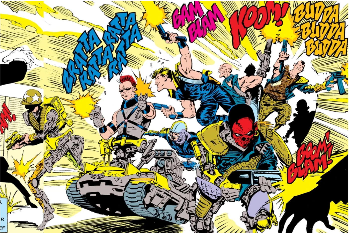 - La obra de arte de Ouellette rinde homenaje a la era del cómic de los años 90, mostrando hábilmente personajes notorios como Lady Deathstrike y los Reavers. La adición de cascos de Iron Man insinúa un giro narrativo, invitando a los fanáticos a imaginar un enfrentamiento entre Lady Deathstrike y Iron Man.