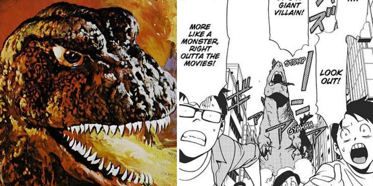 Mejorado por Trigger, Gojiyama se enfureció, que finalmente fue detenido por un héroe estadounidense visitante, el Capitán Celebrity. El incidente sirvió principalmente para revelar cuán heroicos fueron los medios de comunicación del Capitán Celebrity, ya que se negó a involucrarse con Gojiyama hasta que las cámaras estuvieran en la escena. Si bien la inspiración de este es bastante obvia, Gojiyama no es el único personaje que tiene una peculiaridad kaiju. En My Hero Academia: Two Heroes, una breve escena incluye a un héroe profesional gigante que se parece a Godzilla tomando fotos con los fanáticos. La información complementaria confirmó que su nombre era Godzillo, indicando que es un actor con una larga lista de películas a su nombre. Incluso se dice que su peculiaridad se llama Toho, el nombre de GodzillaCompañía de producción. Toho también es el distribuidor de Mi héroe academiapelículas, por lo que fue un guiño bastante abierto para los fanáticos.
