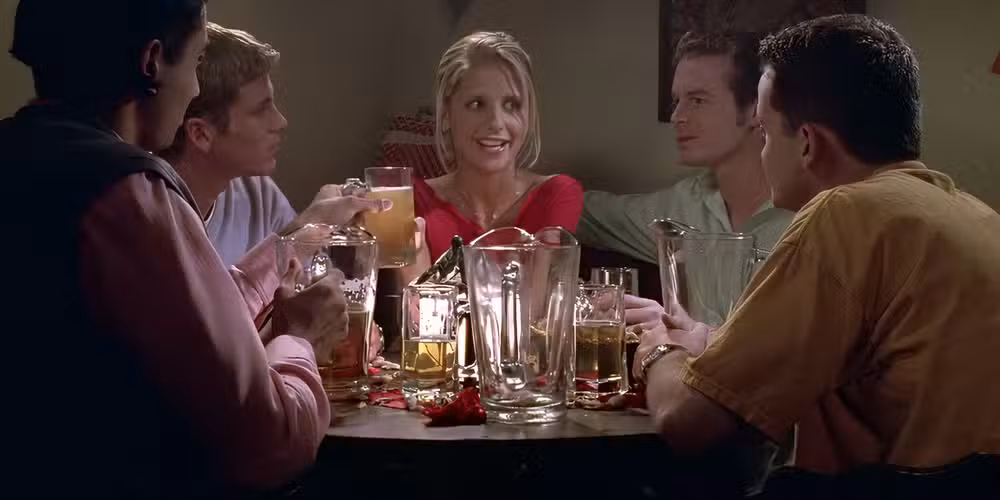 Buffy the vampire slayerEl episodio de peor calificación de los fanáticos es “Beer Bad” de la temporada 4, que ve a un dueño de bar descontento atando su cerveza con una poción que convierte a sus bebedores en personas de cuevas. El programa apenas sopló el presupuesto de VFX en las secuencias de transformación, y los gruñidos universitarios convertidos en neandertales son más que risibles.
