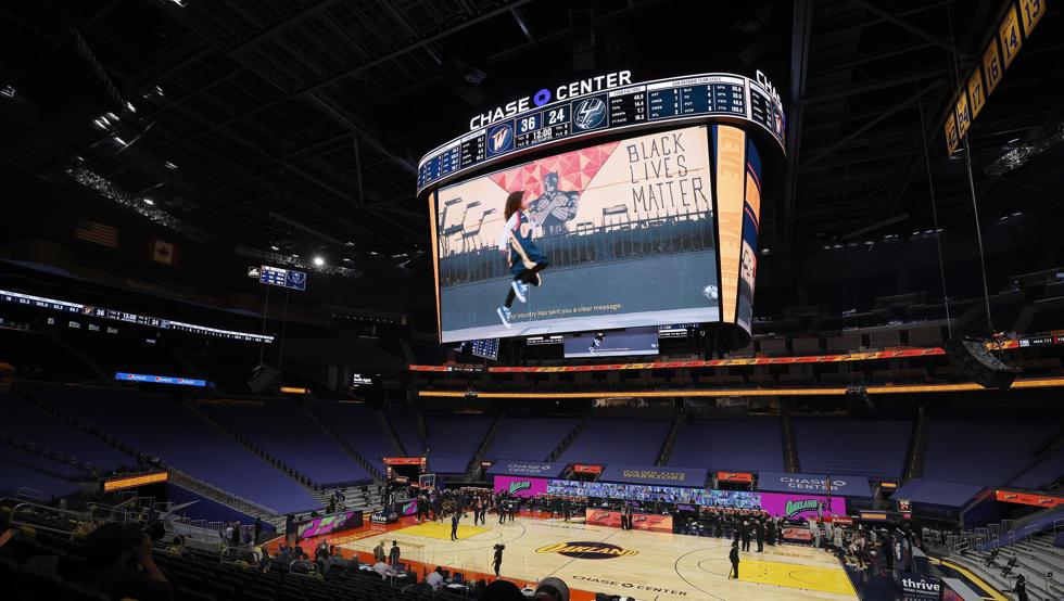 Golden State se mudó a San Francisco hace poco más de un año para estrenar este pabellón, el Chase Center. Sin embargo, no han querido olvidar sus orígenes, la ciudad de Oakland que les acogió durante tantos años. Anoche el diseño del parqué se basó en esa historia y esos colores.