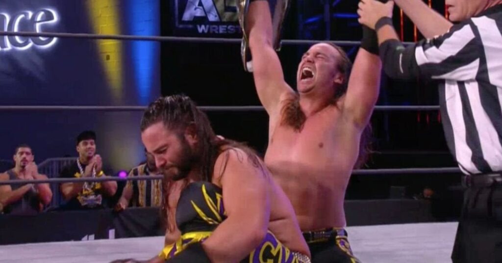Durante todo el partido, Matt Jackson vendió la pierna lesionada de FTR semanas atrás. La secuencia final vio a Cash Wheeler arrancar la bota de la pierna de Jackson y noquearlo con una superkick. Pero en una desviación drástica de su eslogan “No Flips, Just Fists”, intentó un salto de Springboard 450. Jackson se apartó del camino y clavó una Superkick con la pierna lesionada para llevarse la victoria.