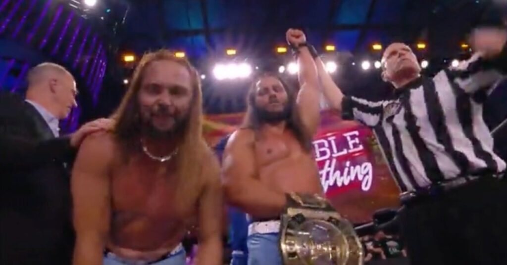 Jon Moxley y Eddie Kingston se quedaron cortos en AEW Doble o nada el domingo por la noche, cayendo ante The Young Bucks en un partido por los Campeonatos Mundiales de Parejas de AEW. Moxley y Kingston comenzaron con mucho impulso saltando los campeones antes de la campana, pero las cosas cambiaron cuando Luke Gallows y Karl Anderson intentaron interferir. Gallows fue enviado por Kingston, Frankie Kazarian apareció de la nada para atacar a Anderson, pero en el caos Matt Jackson golpeó a Moxley en la cara con un aerosol frío y lo abrió.