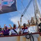 La comitiva zapatista se despide al salir rumbo a Europa, en el muelle de Isla Mujeres, Quintana Roo, el día de hoy. Un grupo de siete zapatistas ha partido el día de hoy desde Isla Mujeres, en Quintana Roo, rumbo a las costas de España para realizar una gira por distintas ciudades. Isla Mujeres, Quintana Roo, 2 de Mayo de 2021.