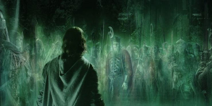 Como se describe en Peter Jackson’s El Señor de los Anillos: El Retorno del Rey, el Ejército de los Muertos son Hombres de las Montañas Blancas que están malditos por Isildur para quedarse como espectros en la Tierra Media después de que abandonaron su juramento de ayudarlo en la guerra de la Última Alianza. Como tal, los hombres muertos de Dunharrow rondan las cavernas debajo del Dwimorberg en una ciudad vasta y fantasmal presidida por el Rey de los Muertos, con ejércitos mortales que normalmente evitan al Dwimorberg. Mientras los ejércitos de Rohan están acampados fuera de la entrada de Dwimorbeg a mitad de camino El retorno del ReyGandalf (Ian McKellen) alude al juramento del Ejército de los Muertos que sigue sin cumplirse, y le encarga a Aragorn que los encuentre, ya que solo responderán ante un heredero de Isildur.