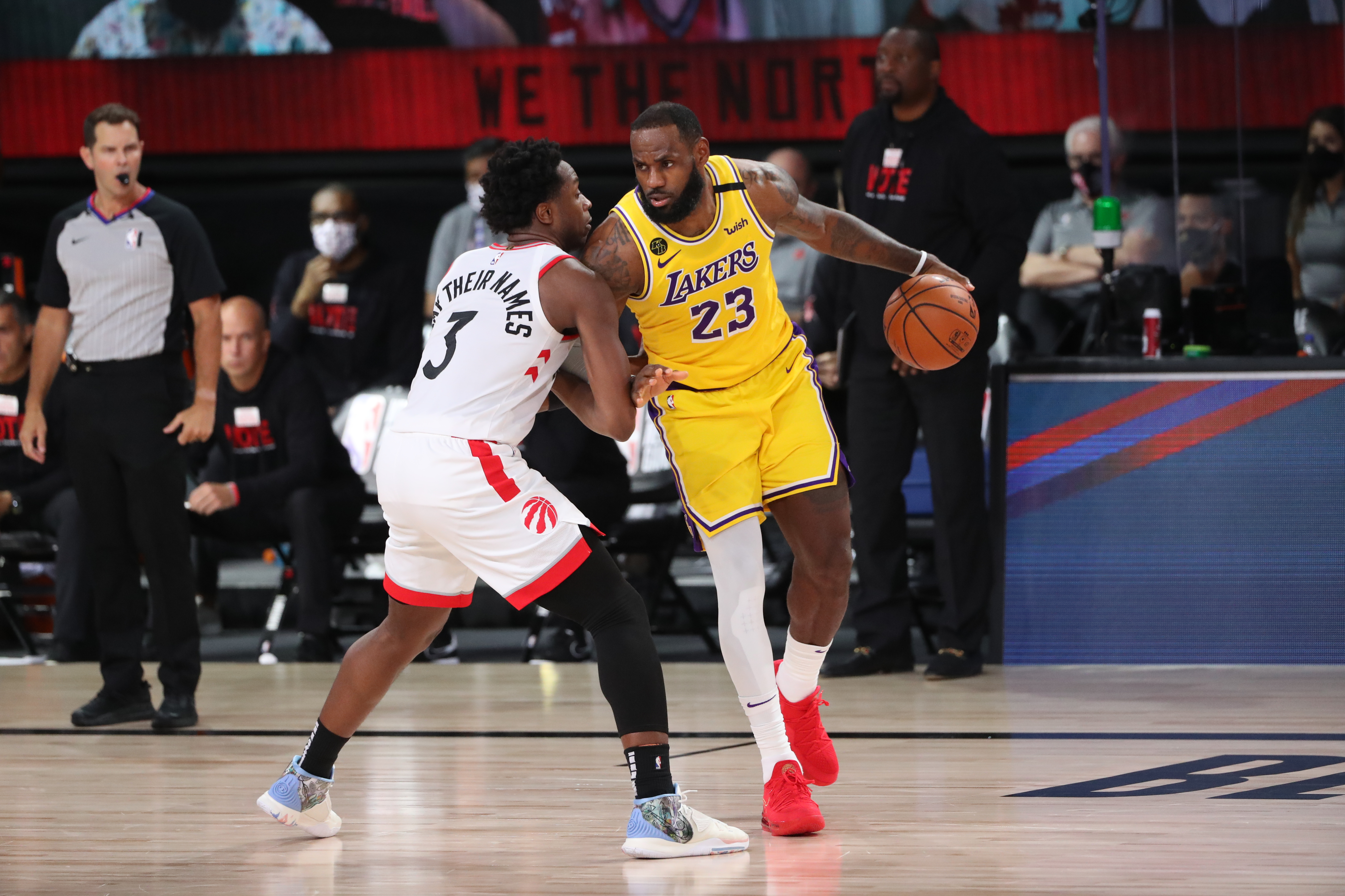 El base Kyle Lowry aportó un doble-doble de 33 puntos y 14 rebotes y seis asistencias que lo dejaron al frente del ataque de los Raptors de Toronto, actuales campeones de liga, que siguieron con su dominio sobre Los Angeles Lakers a los que vencieron por 107-92 en lo que fue su debut en la burbuja de Orlando.