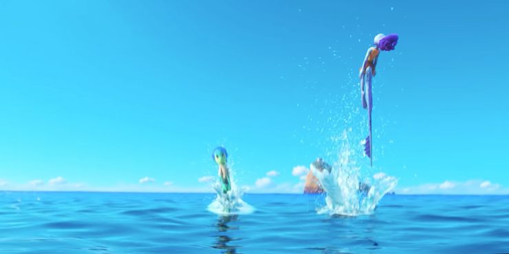 Mientras viajan hacia Portorosso, saltan de un acantilado al agua y nadan y saltan alegremente, entrando y saliendo de forma humana. Es una secuencia alegre y bellamente animada que captura a la perfección la emoción y el optimismo que siente Luca en ese momento.