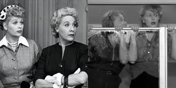Lucy y Vivan se quedan atrapadas en la ducha en un momento clásico cuando el cubículo se llena de agua. Los dos amigos están atrapados en la ducha y discuten cuando el agua llega a la cima. Ball y sus coprotagonistas eran maestros en la comedia física. En particular, Ball cautivó al público con su increíble uso de la comedia física a lo largo de su carrera.