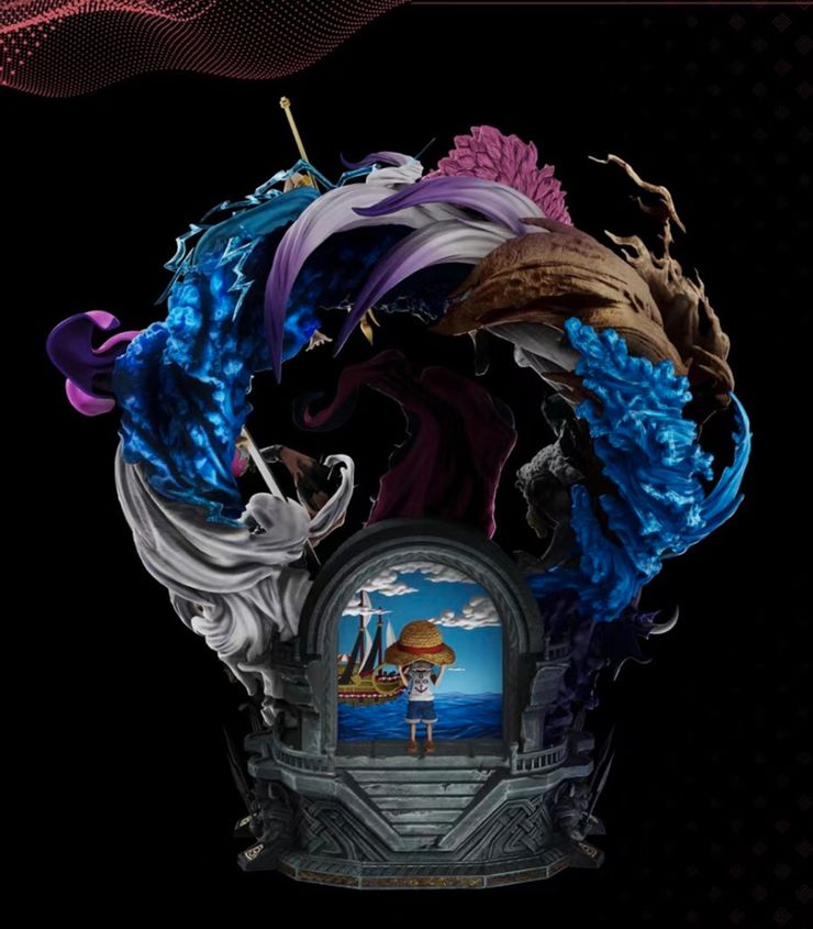 La estatua producida por el estudio Last Sleep muestra algunos de los enemigos que Luffy tuvo que derrotar en su camino. Comenzando desde la izquierda, el Shichibukai Gecko Moria está rodeado por las sombras que tiene el poder de controlar. Sobre él se encuentra el pirata hombre pez Howdy Jones, el primer enemigo que Luffy venció en el Nuevo Mundo. Avanzando allí está Crocodile, a quien Luffy derrotó al principio durante su viaje en Grand Line, pero aún así fue un oponente memorable. Sobre él se cierne Donquixote Doflamingo, uno de los enemigos más peligrosos a los que se ha tenido que enfrentar el Sombrero de Paja, que presumía de una poderosa Fruta del Diablo, era el líder de una gran organización clandestina e incluso tenía conexiones secretas con el Gobierno Mundial. En el lado derecho, God Ener, el tirano de la isla de Skypeia, está listo para atacar. Debajo de él están los dos poderosos hijos de la emperatriz pirata Big Mom, Cracker y Katakuri, quienes le pidieron a Luffy que desbloqueara su nueva forma de Hombre Serpiente para derrotarlos. Finalmente, en la esquina inferior derecha se encuentra Rob Lucci, el agente más fuerte de la organización secreta del gobierno conocida como CP0, quien les hizo pasar un mal rato a los Sombrero de Paja en el pasado.