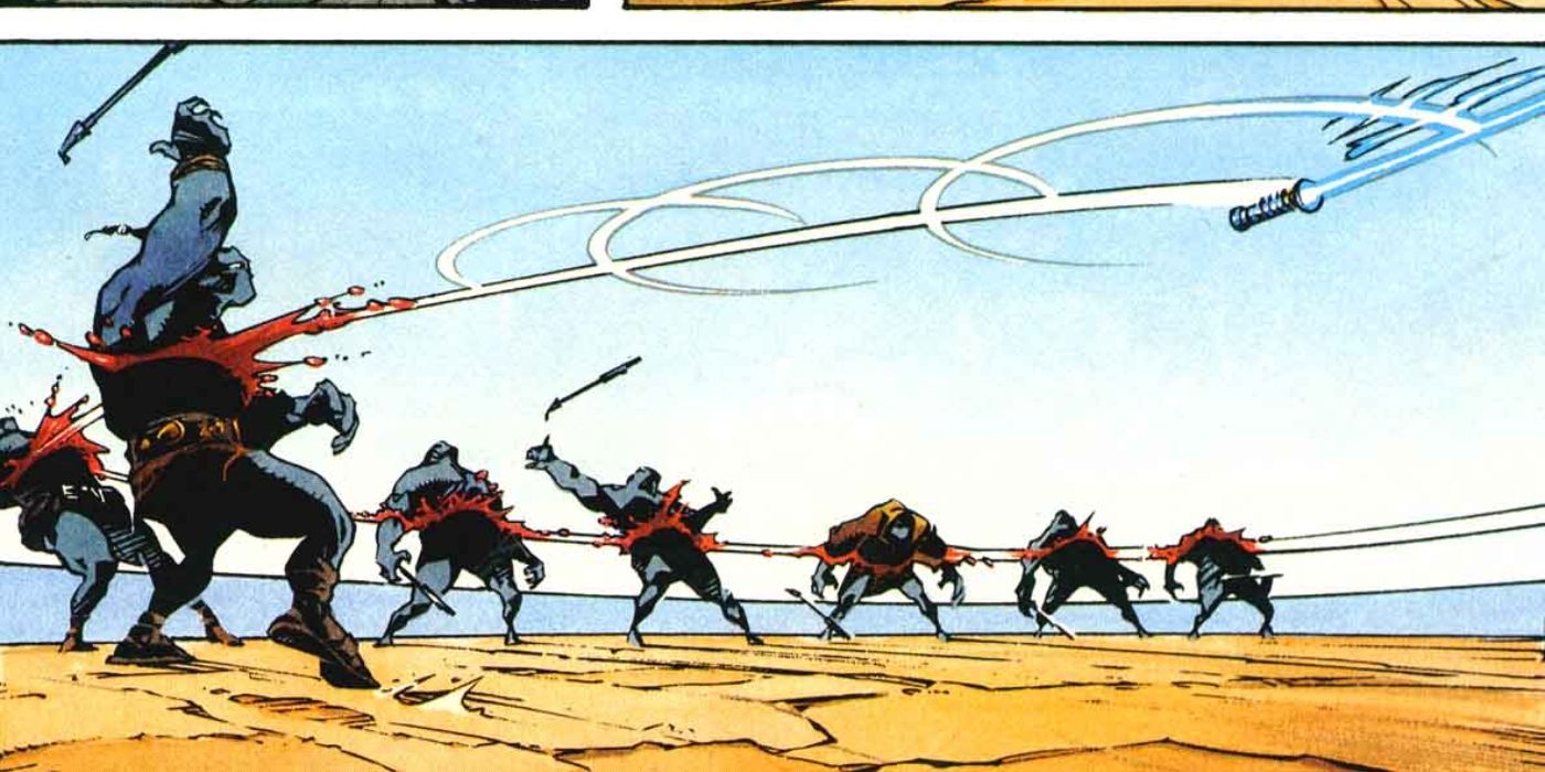 Mientras Lucas Skywalker y Darth Vader son efectivamente opuestos en Guerra de las Galaxias Lore, eso no significa que Luke no haya podido aprender algunos trucos de su malvado padre. De hecho, como se muestra en el Leyendas secuela de El regreso del Jedi, Guerra de las Galaxias muestra que Luke realmente aprendió su técnica de sable de luz más oscura de Vader.
