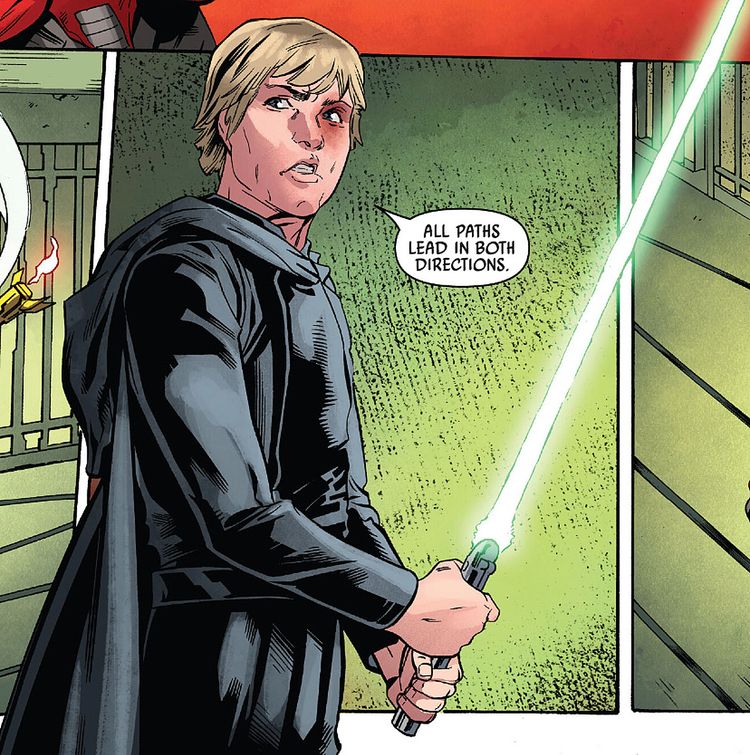“Todos los caminos conducen en ambas direcciones.“, dice Luke en otra parte del número, agregando más matices a la visión de los Jedi. Para algunos, sucumbir a la oscuridad puede ser un paso necesario en su camino hacia la aceptación de la luz. Guerra de las Galaxias Los fanáticos lo saben bien, este sería el caso del padre de Luke, Anakin Skywalker, quien finalmente encontró la redención al final de su vida, durante los momentos finales de El regreso del Jedi. Guerra de las Galaxias El número 43 describe el momento en el que Luke comprendió esto firmemente por primera vez, lo que le permitió redimir a su padre poco después.