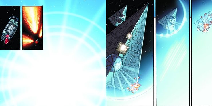 Usando el núcleo del reactor de fusión único del X-Wing experimental, Leia hizo que Luke conectara el núcleo a un torpedo de protones armado manualmente antes de usar la Fuerza para empujarlo justo donde vendrían dos Destructores Estelares desde el hiperespacio. Siendo un dispositivo tan pequeño y los Destructores surgiendo de un salto, no tenían idea de lo que les esperaba, sin posibilidad de reaccionar. Mientras que la Vicealmirante Holdo saltó a la velocidad de la luz mientras apuntaba la nave insignia abandonada de la Resistencia a la Flota de la Primera Orden en los ultimos jedi, Luke y Leia hicieron lo contrario en esta historia de Legends, aprovechando que el Imperio salía del hiperespacio. Sin embargo, los efectos fueron igual de épicos.