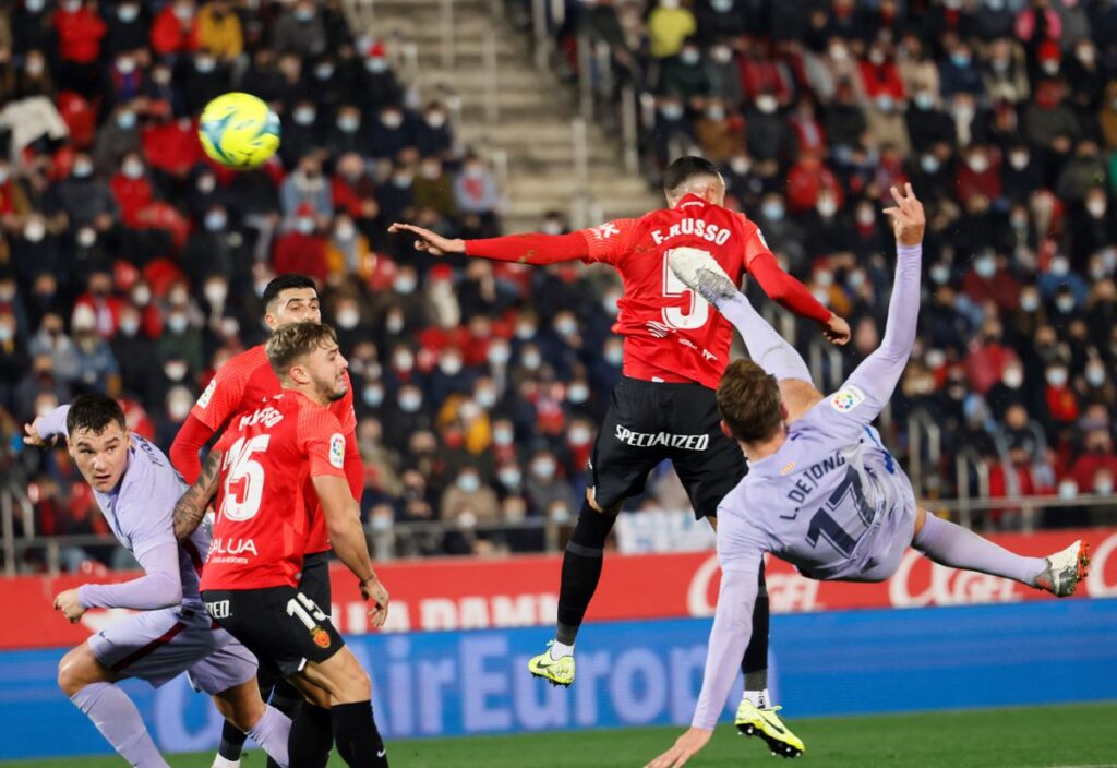 El desgaste físico penalizó a los barcelonistas, reiterativos en las pérdidas del balón, acosados por el Mallorca, escaso de juego y oportunidades y al tiempo intimidador en las acciones de estrategia, como se advirtió en un testarazo del exazulgrana Mboula. Los finales de partido acostumbran a ser trágicos para el Barcelona. Ha descontado muchos puntos en los últimos tramos, cuando los delanteros y centrocampistas se desfondan y el equipo pierde reiteradamente el balón y queda a merced de sus centrales, poderosos en Mallorca. Piqué y Eric se levantaron como colosos para defender los golpes francos laterales botados ante el área de Ter Stegen.