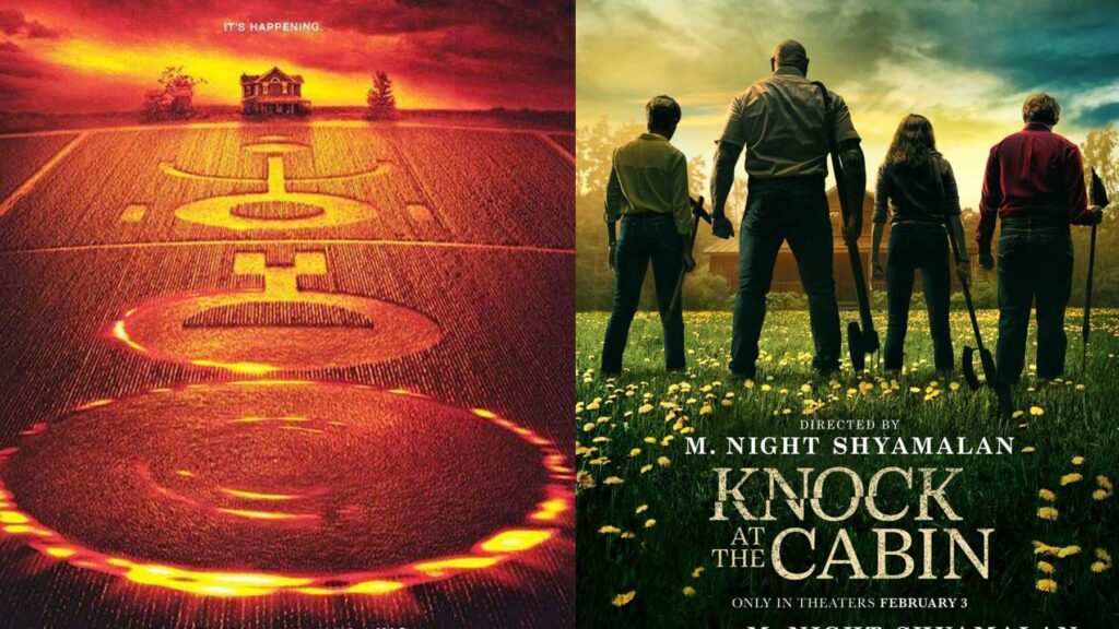 Al director no le falta razón en su comparativa. Tanto Llaman a la puerta como Señales tienen ideas principales en común: “Ambas películas están confinadas, hasta cierto punto, y ambas están pobladas por familias tan adorables en el centro de un mundo apocalíptico. Creo que te enamoras de ellos, tienes miedo por ellos. Te sientes conectado”. Llaman a la puerta comienza su historia con una familia que se va de vacaciones a una cabaña en una zona remota del bosque. Al poco tiempo de su llegada, la joven niña y sus dos padres son tomados como rehenes por cuatro extraños armados que exigen que tomen una decisión impensable para evitar el apocalipsis: el sacrificio de uno de ellos. Si bien es cierto que tanto la película protagonizada por Mel Gibson y Joaquin Phoenix como esta, tienen como parte de su núcleo la fe. En realidad, Señales tiene una perspectiva esperanzadora y positiva de la misma, mientras que Llaman a la puerta juega con el terror y la visión más negativa de la creencia divina.