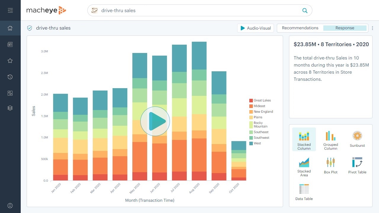 MachEye no es solo lo que su fundador y director ejecutivo, Ramesh Panuganty, llama una plataforma de BI de “poca preparación, sin preparación”, sino que utiliza el procesamiento del lenguaje natural para permitir que cualquiera pueda consultar los datos utilizando el lenguaje natural, y luego puede generar automáticamente historias de datos interactivas en la mosca que puso la respuesta en contexto. Ese es un enfoque bastante diferente al de su competencia más centrada en el tablero.