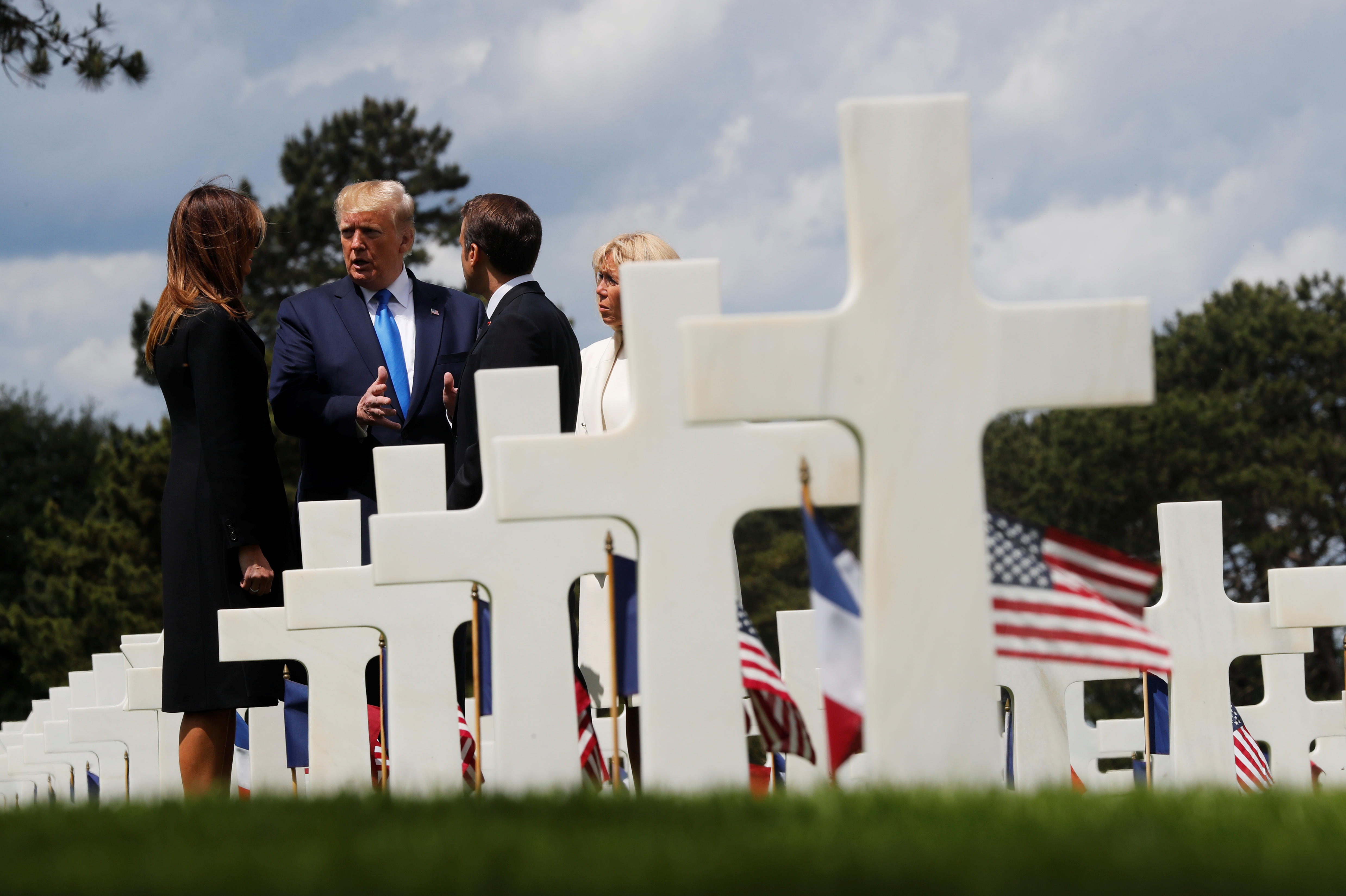 Macron y Trump se reunieron en Colleville-su-Mer, un poblado normando frente a la costa en el sector de la playa que durante la invasión fue denominado Omaha y en el que los aliados incurrieron en el mayor número de bajas.