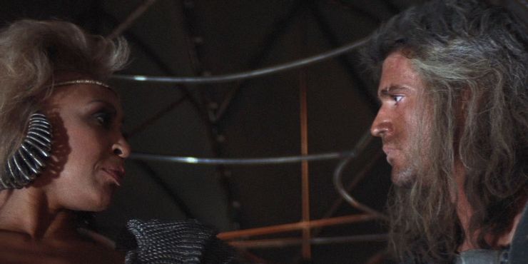 Muy parecido El guerrero de la carretera es mucho más campista y menos brutal que Mad Max, Más allá de Thunderdome es una película más ligera que sus dos predecesoras. Es el único Mad Max película para evitar matar al villano, que en este caso es la tía Entity de la legendaria cantante Tina Turner. La tía Entity es la gobernante incuestionable de Más allá de Thunderdomeestá estableciendo Bartertown, y pronto demuestra ser la única Mad Max antagonista al que se le ofrece una interpretación comprensiva en la serie. Donde Toecutter, Immortan Joe y Lord Humungus son líderes de pandillas asesinos y desquiciados de fuerza variable, la tía Entity parece sincera en su intención declarada de restaurar el orden en el páramo de Mad Max.