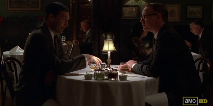 Ya sea Roger vomitando por todas partes o Freddy Rumsen orinando en sus pantalones, a veces el alcohol termina obteniendo lo mejor de estos personajes. Sin embargo, las escenas de bebida realmente relajan a muchos de los personajes, y eso conduce a algunas escenas brillantes e igualmente olvidables a lo largo del programa después del trabajo.