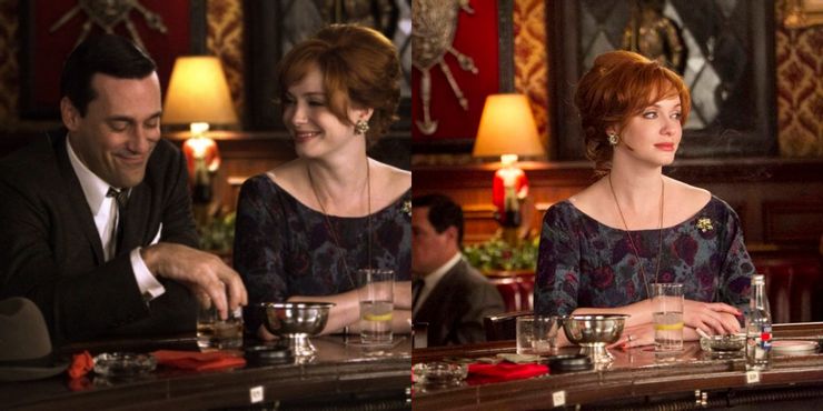 Don y Joan son dos de Hombres locos grandes personajes y dos que se tienen un verdadero respeto el uno por el otro, tanto que nunca cruzan el límite de tener una relación romántica. Sin embargo, esta escena es la más cercana a eso, con coqueteo, tensión y algunos hermosos diálogos.
