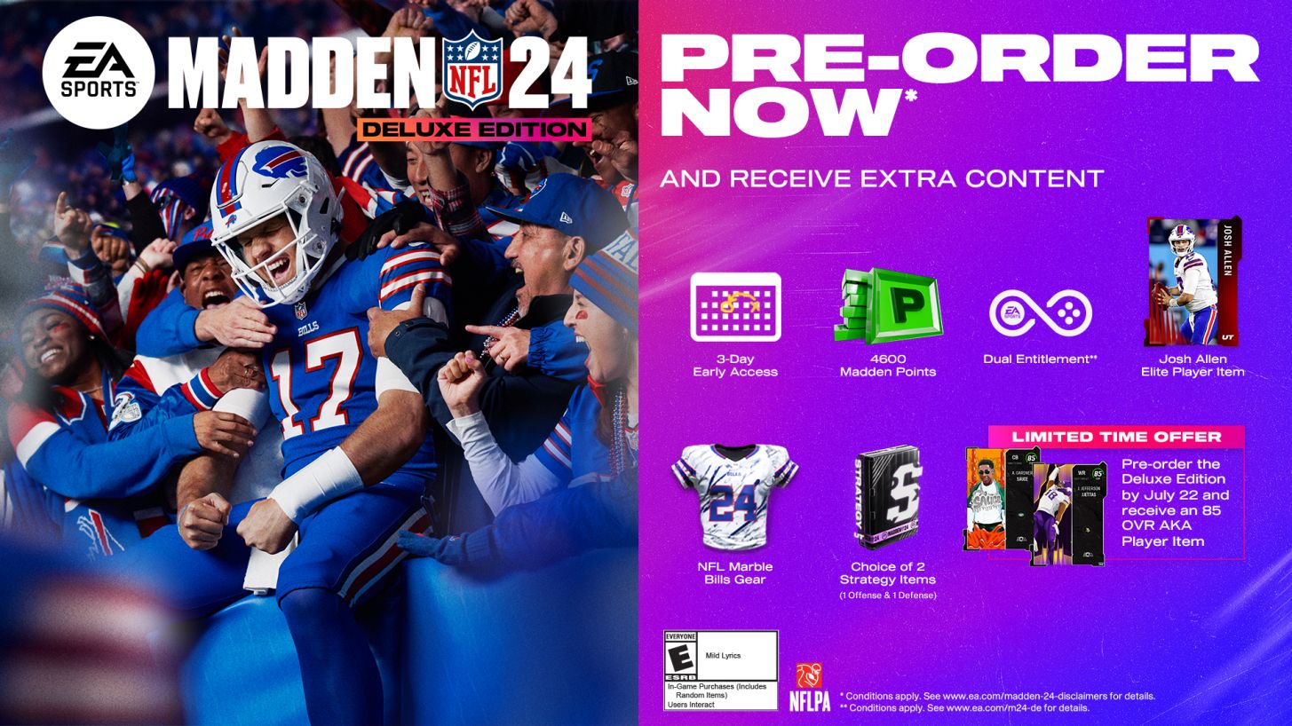 Y eso es todo para las bonificaciones por pedidos anticipados de la Edición estándar de Madden NFL 24. Los pedidos anticipados de la Edición estándar también reciben Dual Entitlement, que permite una actualización intergeneracional gratuita de la versión de PS4 a la de PS5, o de la versión de Xbox One a la de Xbox Series X/S.