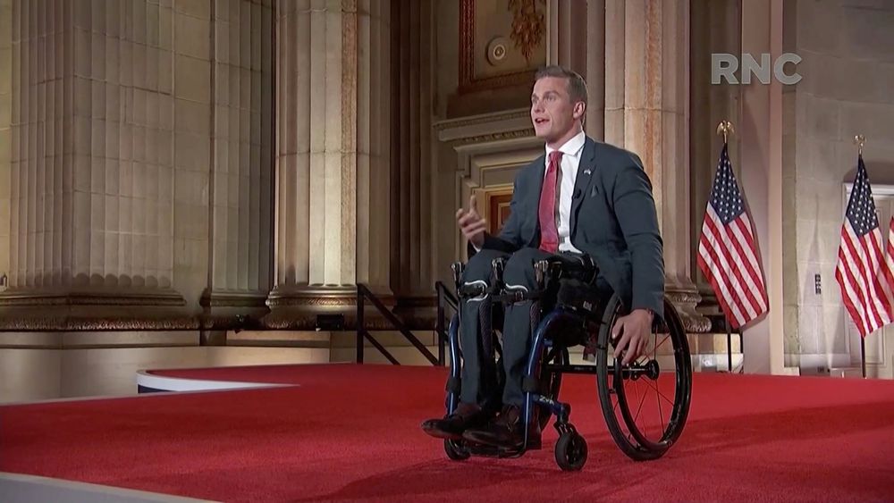 Cawthorn, que se define como un “conservador constitucional”, contrario al aborto y a favor de las armas, sufrió un accidente de coche a los 18 años que casi le cuesta la vida y que lo dejó en una silla de ruedas. En la Convención habló sobre cómo superar las adversidades, de la fuerza arrolladora de la juventud. Dio un par de ejemplos de grandes próceres de la patria que tuvieron un papel importante cuando eran aún veinteañeros. “Mi favorito personal es James Madison, que tenía 25 años cuando firmó la Declaración de Independencia”, dijo. Madison nunca firmó el documento. Al final del discurso, con la ayuda de dos agentes, y mientras se refería a la bendición de Dios, se puso de pie. Con un desfile de banderas estadounidenses de fondo, parecía un exsoldado.