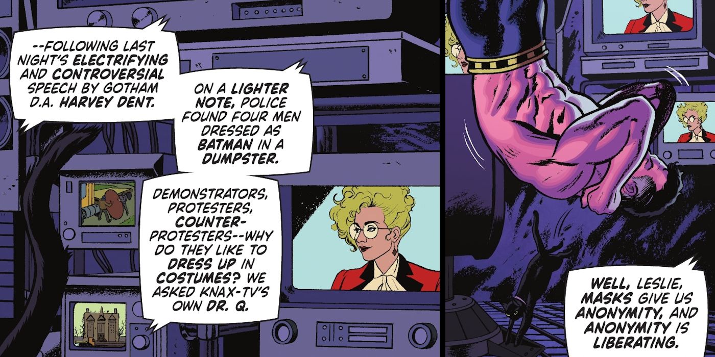 En Tim Burton hombre murciélago, después de que el Guasón desfiguró el rostro de Alica, se dice que ella se arroja por una ventana fuera de la pantalla. Sin embargo, se da a entender que Joker la mató. Cualesquiera que hayan sido las circunstancias de su “muerte”, la Sra. Hunt podría muy bien seguir apareciendo en ecos. Al mismo tiempo, batman ’89 #2 presenta un breve cameo de un “Dr. Q”, probablemente aludiendo a la Dra. Harleen Quinzel, especialmente porque luce el clásico esquema de color rojo, blanco y negro de Harley. No solo eso, el diseño del Dr. Q es, en retrospectiva, sospechosamente parecido a Madonna. Hay muchas formas en que Harley Quinn podría manifestarse en el nuevo batman ’89 secuela cómica, pero de cualquier manera, la perspectiva de Madonna entrando finalmente en el hombre murciélago el universo es apasionante.