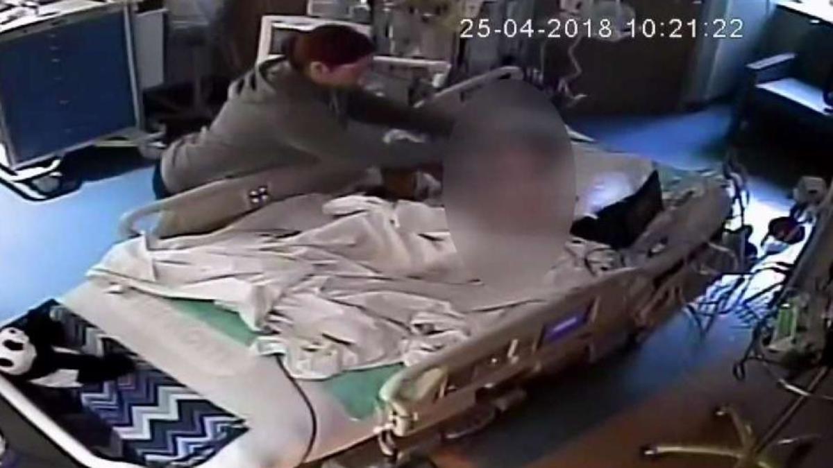 La policía arrestó a Malone tras ver una grabación que la enseña usando una jeringa para introducir sangre en el tubo traqueal y la línea central de su hijo. El video fue mostrado en corte.