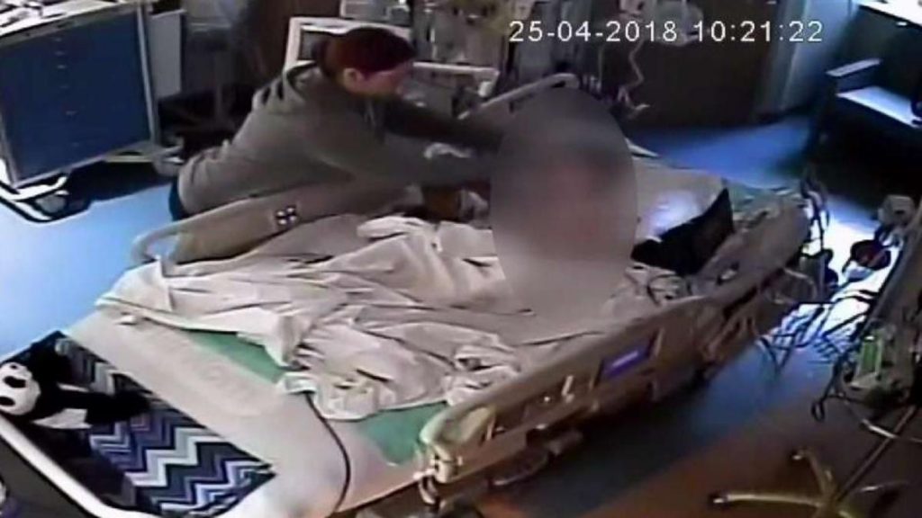 La policía arrestó a Malone tras ver una grabación que la enseña usando una jeringa para introducir sangre en el tubo traqueal y la línea central de su hijo. El video fue mostrado en corte.