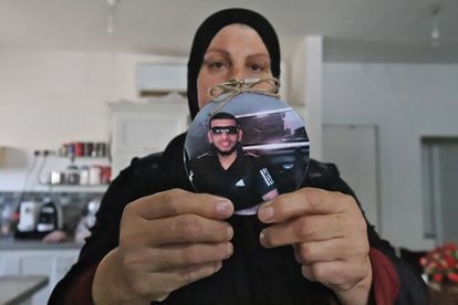 Zahya Nasra sostiene la foto de su hijo asesinado el pasado marzo, Layt Nasra, de 19 años, el lunes 13 en Qalansawe (Israel).