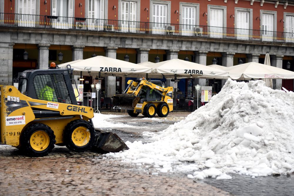 Esta es otra de las asignaturas pendientes para que Madrid recupere la normalidad tras el paso del temporal era acabar con la nieve cada vez más ennegrecida y el hielo amontonado todavía casi en cada calle y en cada esquina de la ciudad. Se había retirado en gran medida de carriles y aceras para favorecer el tránsito de vehículos y peatones, pero no se había recogido. Tampoco el ascenso de las temperaturas o la fina lluvia del miércoles lograron derretir esos montones.