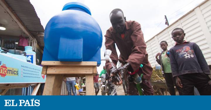 Cuenta Muasa que en Mathare los niños siguen llenando las calles y juegan en grupos, haciendo imposible cumplir con la distancia de más de un metro entre personas. Edgar y Rafael corretean arriba y abajo mientras su madre cuida al pequeño Luther King, de siete meses, y su padre intenta ayudar a la comunidad desde el Mathare Environmental Youth Group (MECYG), la organización local de la que es fundador. Con la ayuda de la oficina de ONU Habitat en Nairobi han colocado dos puntos de lavado de manos en el barrio, uno en la sede del centro y otra en el campo de futbol. En cada punto trabaja un vecino que enseña a la gente cómo deben lavarse las manos para evitar la propagación del virus. La mayoría de la población de Mathare no cuenta con un grifo en casa, una realidad extendida en el resto del continente. La Organización Mundial de la Salud calcula que el 63% de las personas que viven en ciudades en África subsahariana no puede limpiarse con agua y jabón.