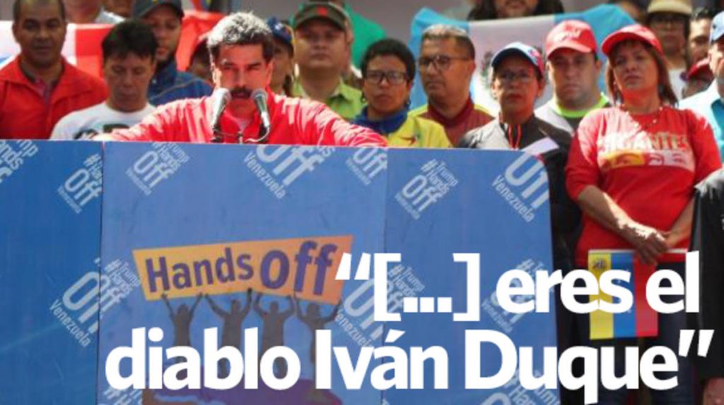 Maduro señaló que ya se ha visto “cómo se ha prestado el territorio de Colombia por parte del Gobierno del señor (Iván) Duque” para una supuesta agresión en su contra al referirse a la asistencia que se ha prestado desde el país vecino para que entre la ayuda humanitaria allí almacenada para ser enviada a Venezuela.