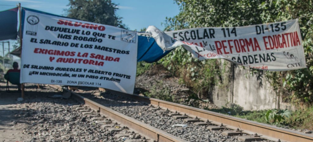 Explicó que aún queda un grupo de la CNTE en el poblado de Caltzontzin, municipio de Uruapan, con el que se trabaja “para cumplir el acuerdo que habían tomado en la asamblea desde hace dos o tres dias, en donde se acordó por una amplia mayoría en la asamblea estatal levantar el bloqueo de las vías del tren”.
