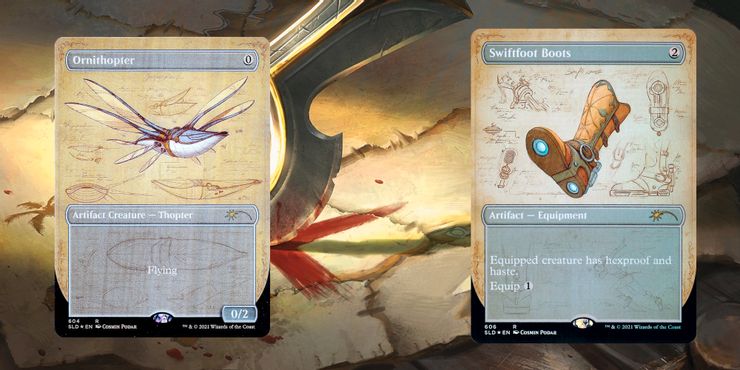Obviamente, las tarjetas se imprimen en mayor cantidad que las Viscera Seer, pero eso no significa que sean económicas. Swiftfoot Boots y Ornithopter son las cartas más caras de esta serie según TCGplayer, con un precio de $ 52 y $ 46 respectivamente. Swiftfoot Boots es otro elemento básico del Commander, que protege a las criaturas importantes de la eliminación selectiva y acelera las grandes jugadas, mientras que Ornithopter es una carta extraña pero útil para sostener equipo y contadores + 1 / + 1 al tiempo que brinda a los jugadores sinergias de artefactos.