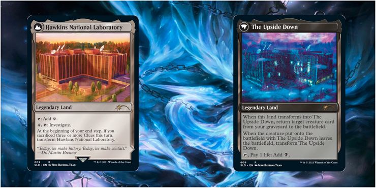 Cada personaje fue revelado y todos ellos tenían la mecánica de “Amigos para siempre”, pero una carta que se dejó fuera hasta que terminó el lanzamiento: el Laboratorio Nacional Hawkins. El diseño es interesante y sabroso, siendo una tierra transformadora que representa The Upside Down en la parte trasera, pero su lugar en magiaEl formato de Commander de 100 cartas y el meta competitivo aún están por verse, ya que la carta aún no ha sido lanzada. Incluso teniendo en cuenta todo esto, la tarjeta se está vendiendo en TCGPlayer por $ 30. Es interesante ver una ubicación de una franquicia popular representada en lugar de un personaje, por lo que quizás esta tarjeta se ajuste al espíritu de ser una tarjeta de bonificación mejor que las que no están vinculadas a una IP.