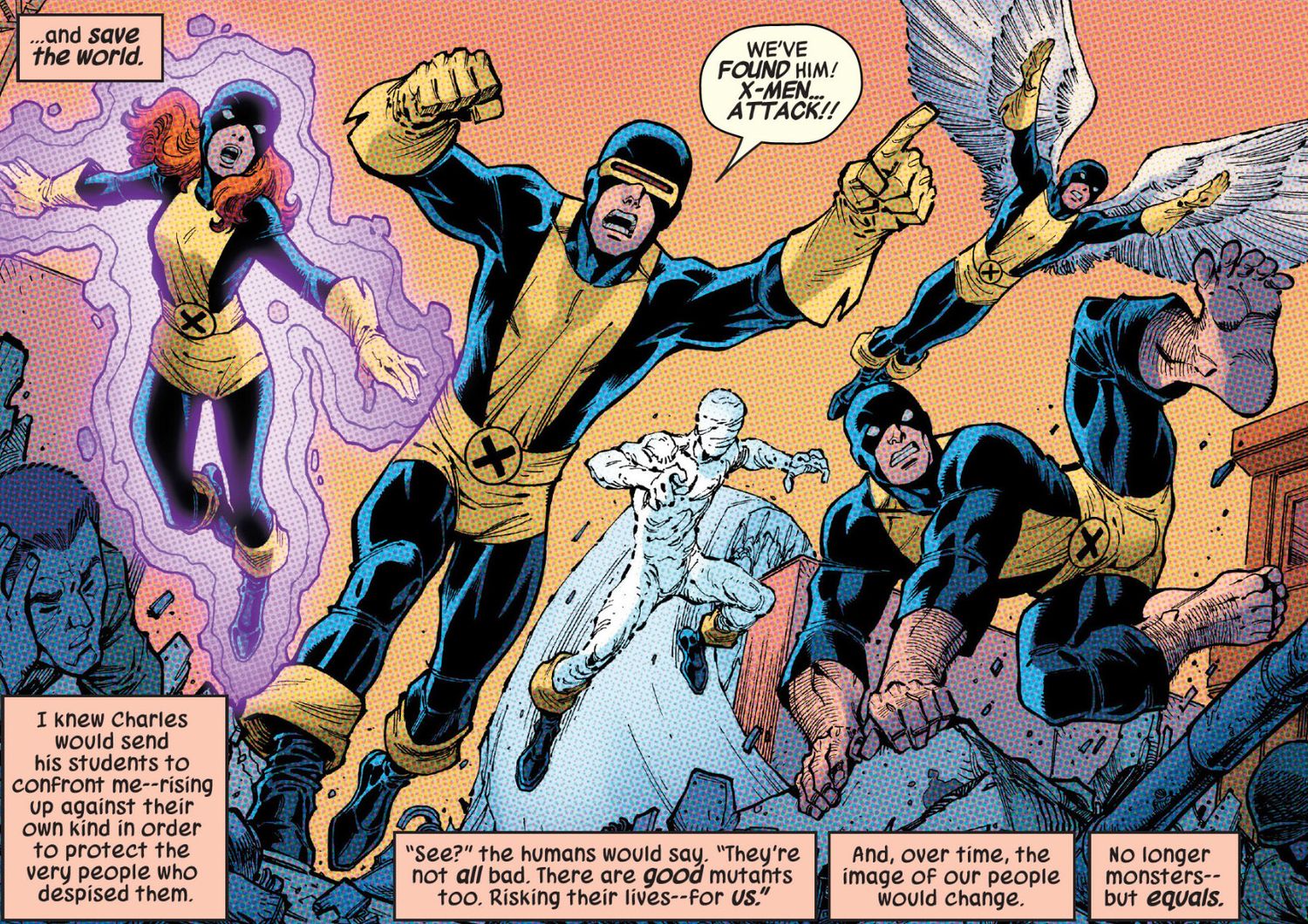 - Magneto revela que su comportamiento malvado fue en realidad un acto, destinado a hacer de los X-Men mejores héroes.
