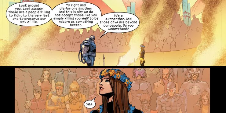 La isla de Krakoa ha ofrecido a los X-Men un nivel sin precedentes de autonomía sobre sus vidas, uno que Magneto ha sido rápido de aprovechar. Esto es más evidente en el papel que ha jugado la resurrección para resucitar a los mutantes caídos de entre los muertos, convirtiendo a Krakoa en la primera sociedad post-mortal en la Tierra en Marvel Comics. Y si bien la resurrección ha permitido a los mutantes escapar de la horrible finalidad de la muerte que ha hecho que su experiencia en la sociedad humana sea tan difícil, su aplicación en Krakoa ha contribuido a una cultura bárbara y sangrienta que celebra la violencia a través de un ritual llamado el Crisol.