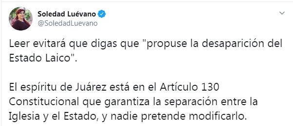 “El espíritu de Juárez está en el Artículo 130 Constitucional que garantiza la separación entre la Iglesia y el Estado, y nadie pretende modificarlo”, afirmó Soledad Luévano, quien planteó la reforma.