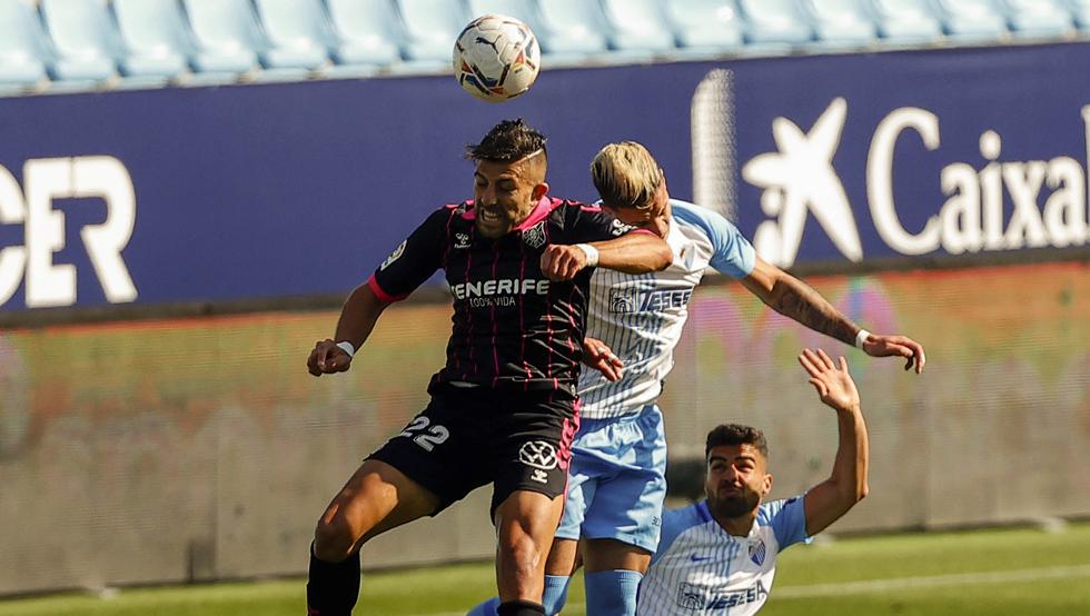 El Tenerife no acusó el golpe e insistió ante la meta rival con un remate de Zarfino que acabó estrellado en el larguero cuatro minutos después del tanto malaguista.