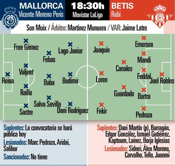 El Betis, que cuenta con numerosos seguidores en la isla, por lo que se espera una buena entrada en Son Moix, llega tras su balsámica victoria ante el Valencia (2-1), aunque la misma no sirvió para despejar las dudas sobre el futuro de Rubi en el banquillo verdiblanco.
