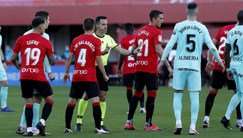Incidencias: Partido de la jornada décimo tercera de la LaLiga SmartBank disputado en el Visit Mallorca Estadi sin público en las gradas.