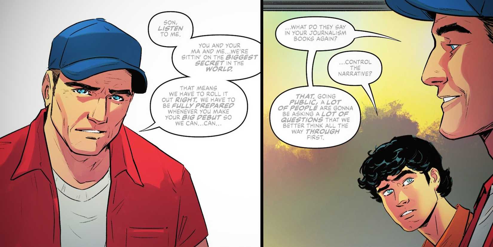 Donde el personaje de Kevin Costner creía que el mundo no estaba listo para un sobrehumano, pero algún día en el futuro, no dudó en admitir que tales asuntos estaban más allá “Un agricultor de Kansas”. Sin embargo, en el nuevo cómic de Mark Waid, Skylar Patridge e Ivan Plascencia, esta encarnación de Jonathan argumenta la necesidad de que la familia “Controle la narrativa” rodeando la emergencia de Clark. Pero incluso esta versión de Pa Kent no está pensando lo suficiente en los riesgos involucrados.