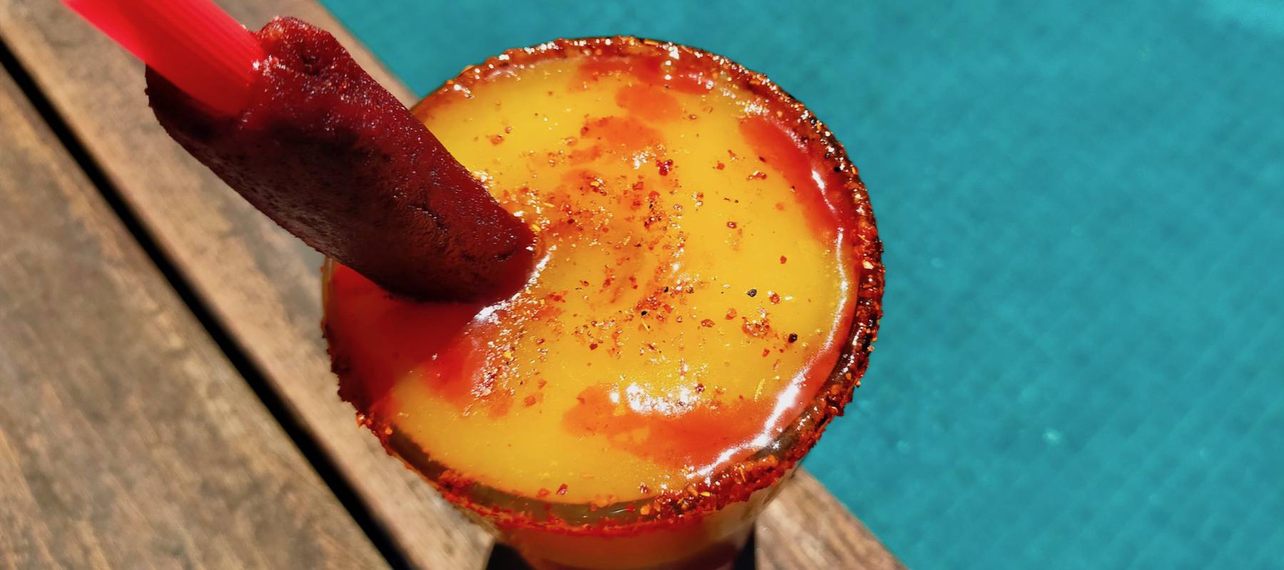4. Decorar los vasos con un poco más de chamoy y tajín por encima. Servir inmediatamente con pajitas.