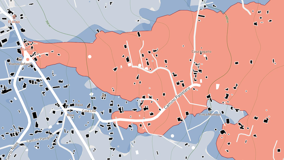 Metodología. La cartografía del área ocupada por la lava la ofrece el programa Copernicus de imagen satélite, en diferentes horas del día. La predicción del posible avance de la colada es una estimación probabilísticas de la Universidad de la Laguna. La información de las construcciones la hemos tomado del Catastro, que proporciona la ubicación, el plano y la foto de cada edificio. El cálculo del número de edificios bajo la lava es una aproximación y puede contener algunos errores, tanto por exceso (por ejemplo, si un edificio está cerca de la colada, pero a salvo), como por defecto (si hay construcciones que no constan en el registro).