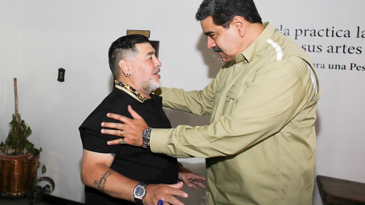“¡Qué alegría ver nuevamente en nuestra patria amada a Maradona! Venezuela es tu casa amigo y hermano del alma. ¡Bienvenido!”, escribió el mandatario venezolano al pie de un video que muestra el encuentro entre ambos.