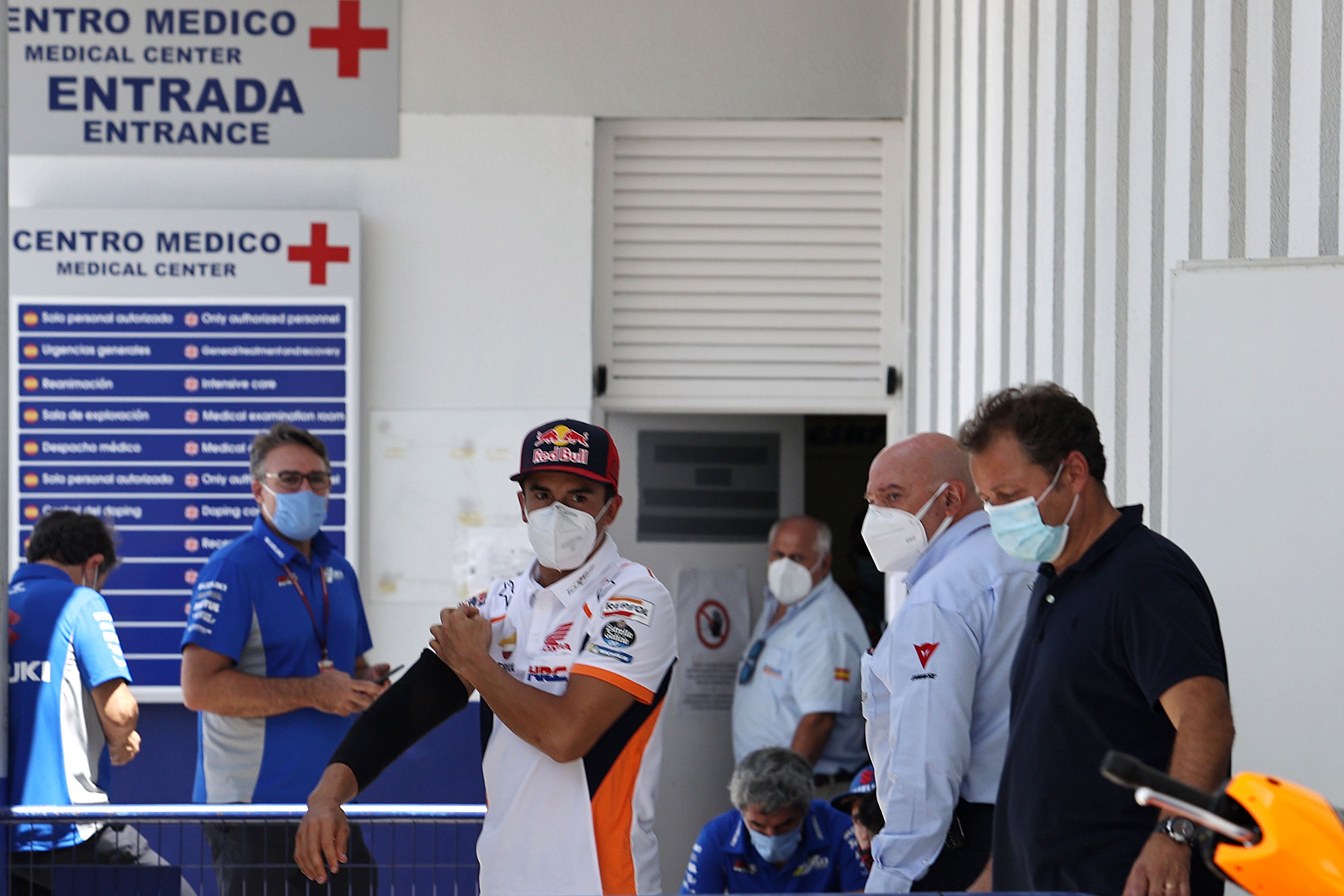 Marc Márquez, en su box durante el gran premio de España en el circuito de Jerez.AFP7 vía Europa Press / Europa PressMarc Márquez no correrá el Gran Premio de Andalucía este fin de semana en Jerez, el mismo escenario este pasado domingo de primera prueba de MotoGP del 2020. Aunque no hay comunicado oficial, el piloto de Honda no figura en la lista provisional que presenta IRTA (la Asociación de los equipos del Mundial de Motociclismo) a los organizadores del campeonato. Además, su equipo dejó ayer la ciudad de Jerez, los mecánicos y trabajadores de su lado del box regresaron a sus casas ante la ausencia segura del 93 en la próxima cita del campeonato. Márquez, campeón del mundo, sufrió una fuerte caída en esa primera prueba del Mundial y se fracturó el húmero del brazo derecho. Llegó ayer a mediodía a Barcelona; aterrizó en el aeropuerto de El Prat con el brazo bien sujeto al cuerpo. Será operado hoy por el equipo del doctor Xavier Mir, en el hospital Quirón Dexeus, donde ingresó ya ayer mismo. Y aunque no se han ofrecido plazos estimados para su recuperación, Honda sí le ha descartado ya para la carrera más inminente, que vuelve a celebrarse en la ciudad gaditana en apenas seis días. Su ausencia en Jerez y las dudas sobre cuándo sera su regreso a las pistas han sacudido el Mundial de MotoGP cuando apenas acaba de empezar.“Marc sabe que se ha hecho daño de verdad y no es optimista”, explicaba el domingo su compañero de equipo y hermano Alex Márquez, que fue a visitarle a su motorhome por la tarde, según él mismo explicó en la conferencia de prensa ofrecida telemáticamente tras la carrera. “A veces las cosas no salen como uno espera, pero lo más importante es levantarse y seguir adelante. ¡Espero que hayáis disfrutado la remontada!”, escribía el propio deportista en sus redes sociales horas después de confirmarse su lesión.Y añadía el mayor de los Márquez: “Ahora toca pasar por el quirófano y fijar la fractura del húmero. Os prometo que volveré lo antes posible con más fuerza”.A veces las cosas no salen como uno espera pero lo más importante es levantarse y seguir adelante. Espero que hayáis disfrutado la remontada!Ahora toca pasar por el quirófano el próximo martes y fijar la fractura del húmero.Os prometo que volveré lo antes posible con más fuerza💪🏼 pic.twitter.com/CKehjhofh0— Marc Márquez (@marcmarquez93) July 19, 2020