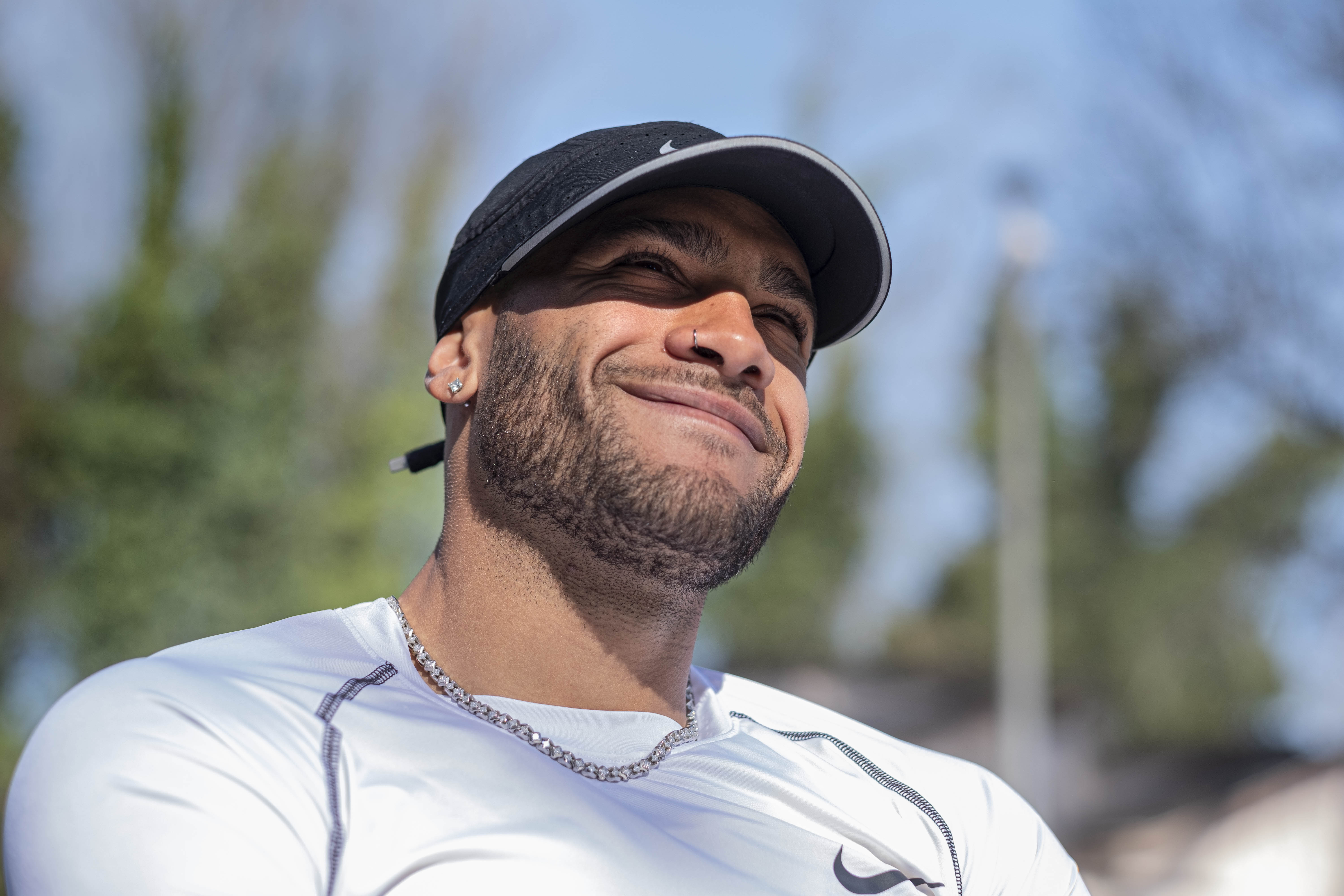 El campeón olímpico de los cien metros dice que es extremadamente perezoso. Y cuesta creerle, claro. Marcell Jacobs (El Paso, Texas, 27 años, pero criado en Italia) atiende a EL PAÍS en Roma, en el estadio Paolo Rosi, donde en la pista de atletismo se junta el hombre más rápido del mundo con gente de a pie que sale a correr pronto por la mañana antes de ir a trabajar, lejos de los ruidos de los atascos infernales de la capital italiana. La pista está abierta a cualquier ciudadano. Antes de empezar el entrenamiento de la mañana y de debutar en un 200 metros (los hará la primera vez a mediados de mayo) Jacobs, que acaba de dejar a sus niños en la guardería, charla sobre su infancia sin padre, sobre su amor por el atletismo y el deporte. También sobre el daño que le hicieron las insinuaciones de algunos medios internacionales después de su oro en Tokio (9,80 por delante de Fred Kerley -9,84- y de Andre de Grasse -9,89-). También ganó el oro en el relevo 4×100. Calza un 46 y tiene las piernas larguísimas.