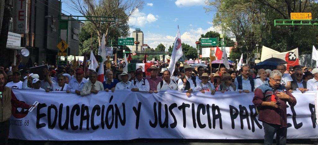 Integrantes del Comité del 68, estudiantes, organizaciones sociales, sindicatos magisteriales y jóvenes en su mayoría iniciaron a las 16:15 horas la marcha para conmemorar el 51 aniversario de la masacre en Tlatelolco ocurrida el 2 de octubre de 1968.
