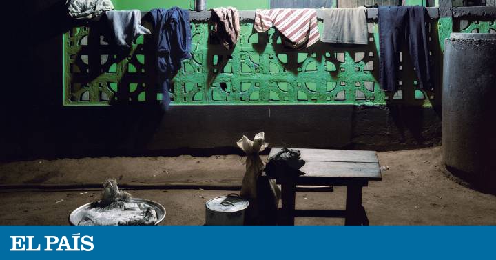 La noche, la atemporalidad de unas imágenes que nos hablan tanto del presente como del pasado, y la ausencia de los pobladores de esos espacios definen este periplo que nos conduce de Marsella a Argel, considerada su hermana gemela al otro lado del Mediterráneo, hasta llegar al poblado de Kasunya en Ghana. La presencia de la artista nunca es intrusiva, tanto cuando trabaja en el interior de las viviendas como en su exterior más inmediato. La cámara enfoca al cielo en la serie Cours Intérieures, justo en el momento en que se encienden las primeras luces que nos alertan de la presencia de los habitantes dentro de sus viviendas. El firmamento queda reducido a un rectángulo —que pudiera funcionar como metáfora del encuadre fotográfico— surcado por los tendales donde cuelga la ropa de los que habitan las viviendas. “Me interesa mucho como la gente organiza el espacio para vivir cuando nada los favorece”, señala la artista. “Estos edificios en concreto pertenecieron en su día a gente burguesa. La zona se empobreció y hoy son los inmigrantes tunecinos y argelinos los que los habitan. Se pueden encontrar familias de ocho hijos viviendo en 20 metros cuadrados y los tendederos de ropa ya no se suelen ver en las casas burguesas, están asociados a zonas más deprimidas”.